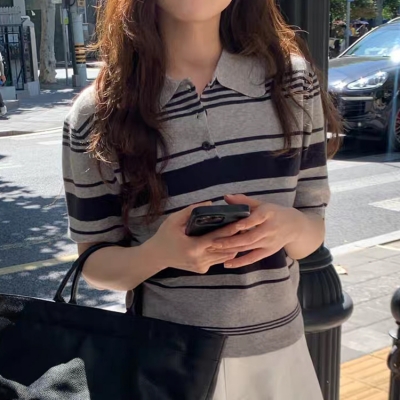 on.[NT671]스트라이프카라넥반팔니트