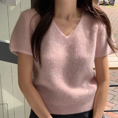 on.[NT675]브이넥퍼프반팔니트