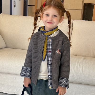 앙뜨제이.체크강아지자수가디건
